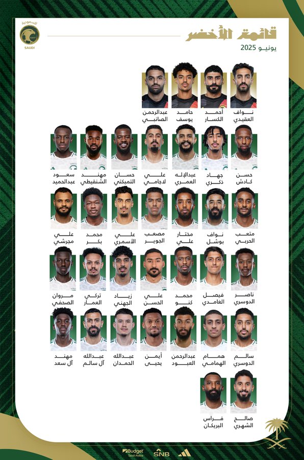 أعلن المدير الفني للمنتخب الوطني إيرڤي رينارد عن قائمة الأخضر استعدادًا لخوض الجولتين التاسعة والعاشرة من التصفيات الآسيوية المؤهلة لكأس العالم 2026.