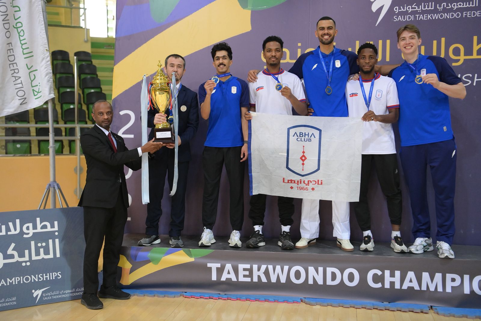 تُوج فريق نادي أبها بلقب بطولة المملكة للتايكوندو للفرق الجماعي للرجال بعد منافسة محتدمة شهدتها الصالة الخضراء بوزارة الرياضة في الرياض، متفوقاً على نظيره فريق الشباب الذي جاء وصيفاً، فيما حل السروات ثالثاً، والاتحاد في المركز الرابع.
