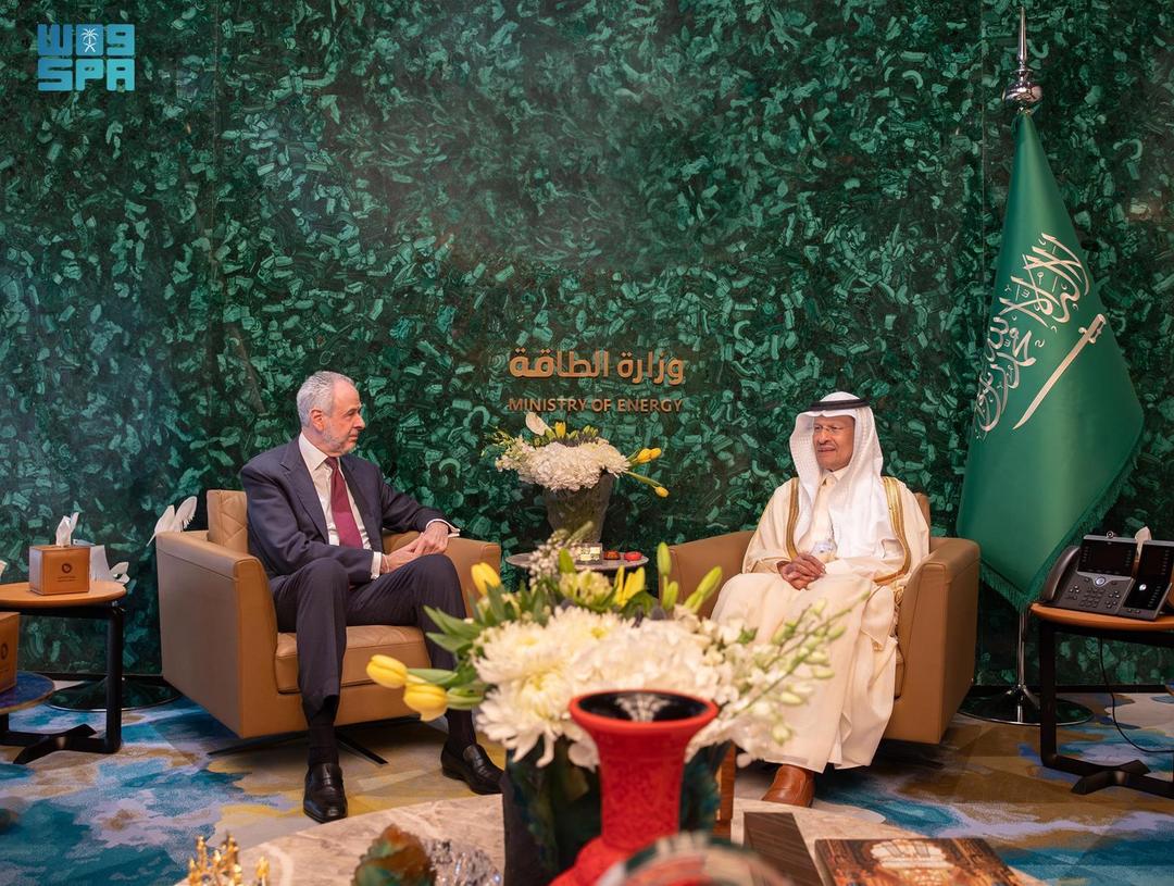 عقد صاحب السمو الملكي الأمير عبدالعزيز بن سلمان بن عبدالعزيز، وزير الطاقة، في الرياض، اجتماعًا مع معالي السفير أندريا كوريا دي لاغو، الرئيس المعين لمؤتمر الأطراف لاتفاقية الأمم المتحدة الإطارية للتغيَّر المناخي (COP30) المقرر عقده هذا العام في نوفمبر في مدينة بيليم في منطقة الأمازون بجمهورية البرازيل.