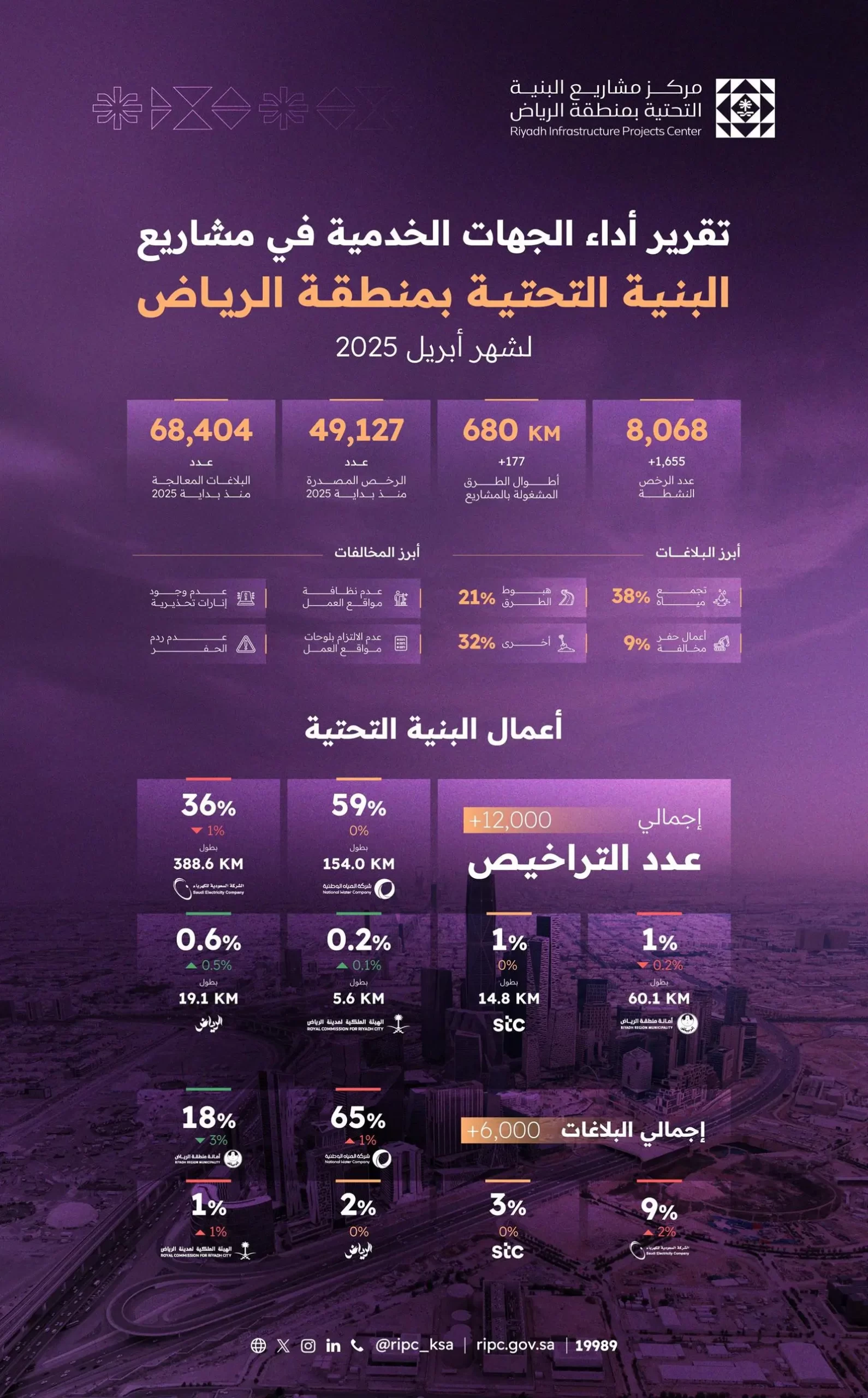 آخر الأخبار > مركز مشاريع البنية التحتية بمنطقة الرياض يصدر تقرير أداء الجهات الخدمية لشهر أبريل 2025