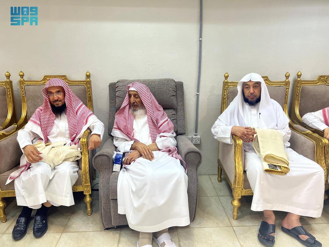 استقبل سماحة المفتي العام للمملكة رئيس هيئة كبار العلماء والرئيس العام للبحوث العلمية والإفتاء الشيخ عبدالعزيز بن عبدالله بن محمد آل الشيخ، بمقر إقامته بمشعر منى في مكة المكرمة، معالي عضو هيئة كبار العلماء الشيخ الدكتور يوسف بن محمد بن سعيد، وعضو هيئة كبار العلماء الدكتور سامي بن محمد الصقير، اللذين قدما للسلام على سماحته، وتهنئته بعيد الأضحى.