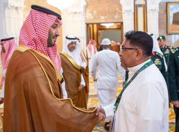 نيابة عن خادم الحرمين الشريفين الملك سلمان بن عبدالعزيز آل سعود ـ حفظه الله ـ، أقام صاحب السمو الملكي الأمير محمد بن سلمان بن عبدالعزيز آل سعود، ولي العهد رئيس مجلس الوزراء، في الديوان الملكي بقصر منى، اليوم، حفل الاستقبال السنوي لأصحاب الفخامة والدولة، وكبار الشخصيات الإسلامية، وضيوف خادم الحرمين الشريفين، وضيوف الجهات الحكومية، ورؤساء الوفود ومكاتب شؤون الحجاج الذين أدوا فريضة الحج لهذا العام يتقدمهم فخامة الرئيس محمد ولد الغزواني رئيس الجمهورية الإسلامية الموريتانية، وفخامة الرئيس الدكتور محمد معز رئيس جمهورية المالديف، ونائبة رئيس جمهورية بنين السيدة مريم شابي تالاتا زيمي بيريما، والرئيس الصومالي الأسبق السيد شريف شيخ أحمد.
