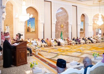 وقال: “إن المملكة بلغت مكانة عالية في قلوب المسلمين، فعملت بثقلها الكبير على توحيد صفوف المسلمين، وتحقيق تطلعات الدول والشعوب المسلمة، من خلال منهج حكيم ومتوازن؛ تتجلى فيه الصورة الحقيقية للدين الإسلامي الحنيف في بعده الوسطي واعتداله المنهجي، وسعت إلى نشر ثقافة التصالح والتسامح والوئام، والنظر للمستقبل بأفق واعد مفعم بروح الأخوة والتضامن”.