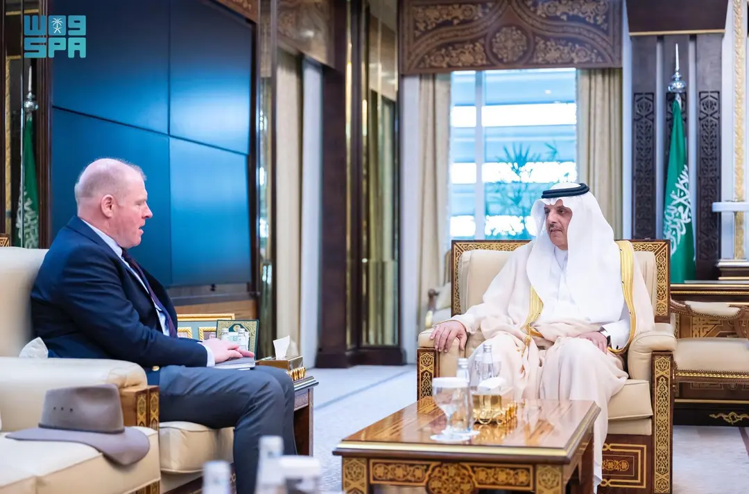 استقبل صاحب السمو الأمير الدكتور عبدالعزيز بن محمد بن عيَّاف نائب وزير الداخلية المكلّف، في مكتبه بالوزارة اليوم، سفير أستراليا لدى المملكة مارك دونوفان.