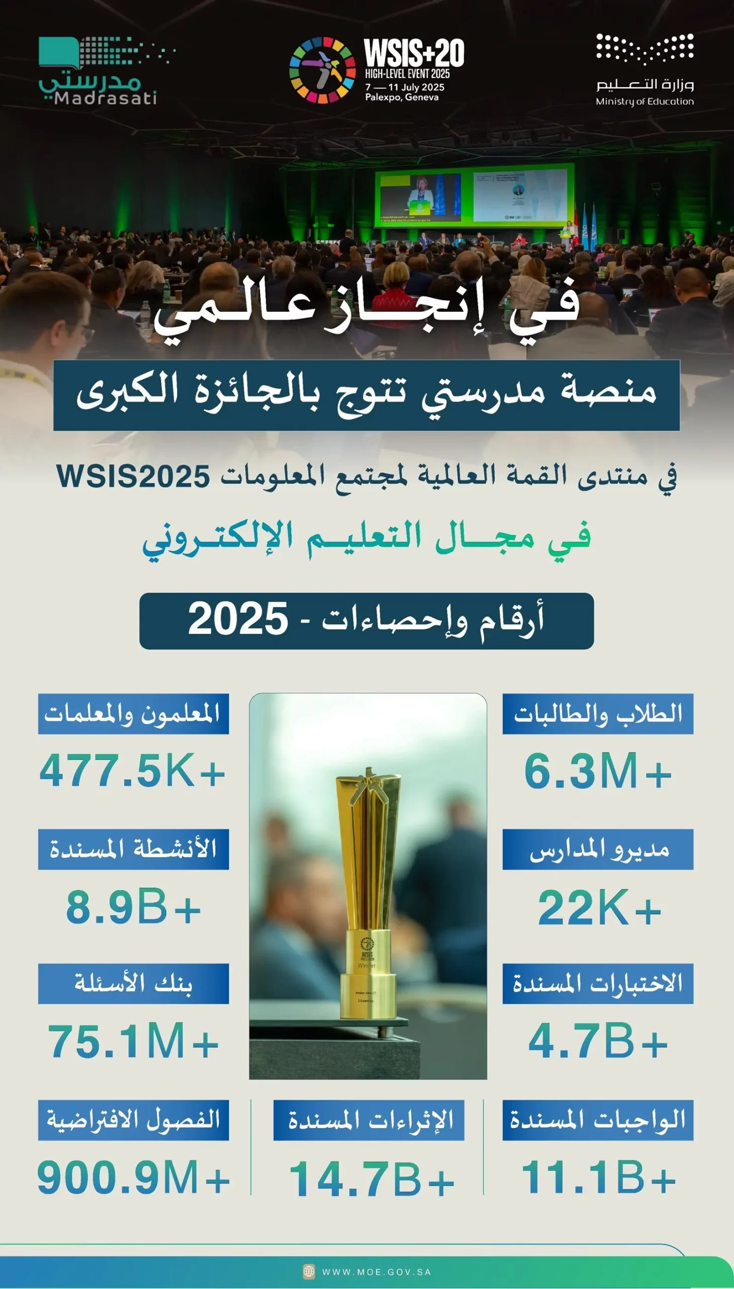 آخر الأخبار > في إنجاز عالمي جديد.. “مدرستي” تحصد الجائزة الكبرى في منتدى القمة العالمية لمجتمع المعلومات wsis 2025 > JGzyB2fibjo4Losx05ADY8p4EWNJw90OPf0PC1a6