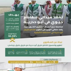 وشملت الجولة مشروع استكمال تقاطعات محافظات الأحساء وبقيق والظهران، ومنها تقاطع أبو حدري، المتضمن تطوير وتحسين تقاطع أبو حدرية، الذي يشمل إنشاء منحدر اتجاهي للقادمين من محافظة بقيق إلى طريق أبو حدرية ويمر بثلاثة جسور، وإنشاء منحدر اتجاهي للقادمين من طريق أبو حدرية إلى ميناء الملك عبدالعزيز ويمر بجسرين، ومنحدر اتجاهي للقادمين من بقيق إلى مملكة البحرين ومدينة أجيال أرامكو، ومنحدر للقادمين من ميناء الملك عبدالعزيز إلى طريق أبو حدرية، ومنحدر وطرق خدمة للقادمين من طريق أبو حدرية إلى محافظة بقيق، ومنحدر وطريق خدمة للقادمين من مملكة البحرين إلى ميناء الملك عبدالعزيز، كما تضمن إنشاء (5) جسور إلى جانب أعمال الإنارة وتصريف مياه الأمطار.
