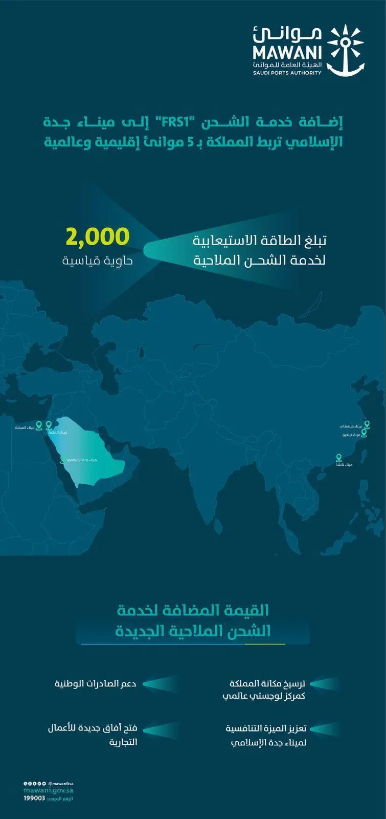 آخر الأخبار > “موانئ”: إضافة خدمة الشحن “frs1” التابعة لشركة “cstar line” إلى ميناء جدة الإسلامي > 8bc9pTq4UH151oWFaAlojPrpjRL1OdYHy1tARd8E