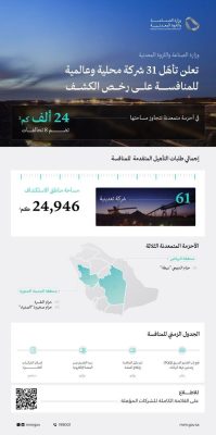 آخر الأخبار > وزارة الصناعة والثروة المعدنية تعلن تأهل 31 شركة محلية وعالمية للمنافسة على رخص الكشف في أحزمة متمعدنة تتجاوز مساحتها 24 ألف كم² > b3Ym27UfWwHI0YQhjAz9526XnPAzHKtn9k9JqvPB