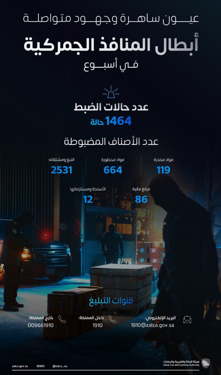 آخر الأخبار > المنافذ الجمركية تسجل 1464 حالة ضبط خلال أسبوع > b73fce69-cea8-4326-bd28-20a5520aa2ba