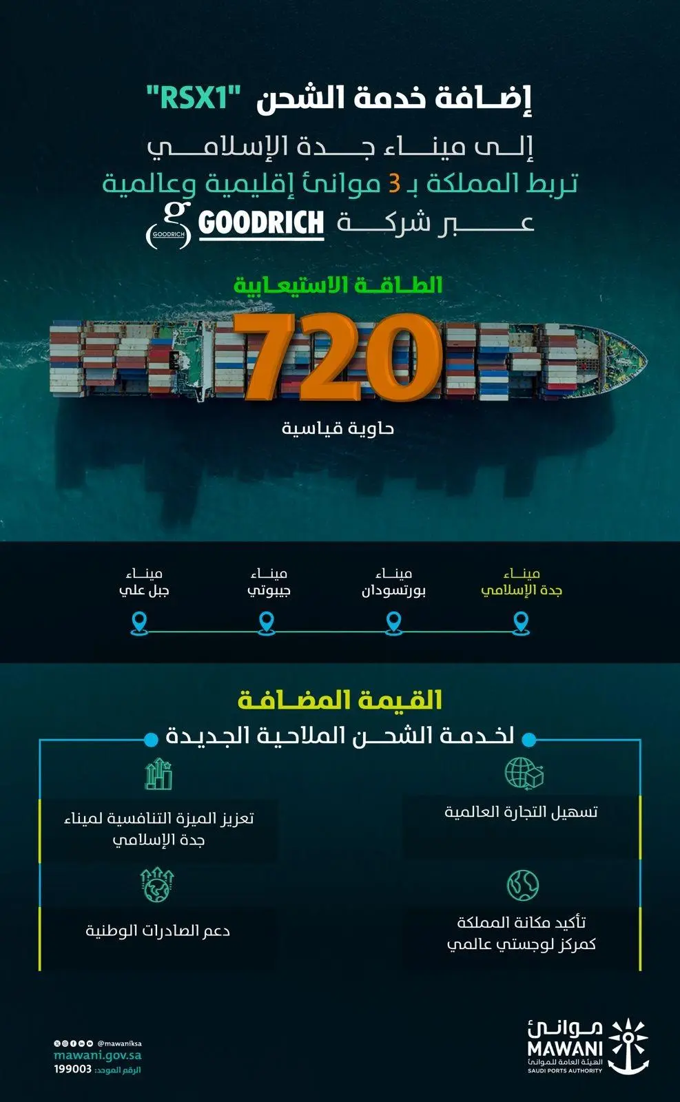 آخر الأخبار > إضافة خدمة الشحن “rsx1” التابعة لشركة “goodrich” إلى ميناء جدة الإسلامي > zEmKlmF7nZZvNGlAkSVKws37CUymMWJTMFo2wB52