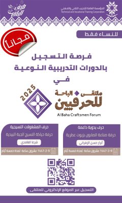 آخر الأخبار > ملتقى الباحة للحرفيين 2025 يواصل فعالياته للأسبوع الرابع ويدعو للتسجيل في دورات نوعية تنطلق الأحد > Untitled