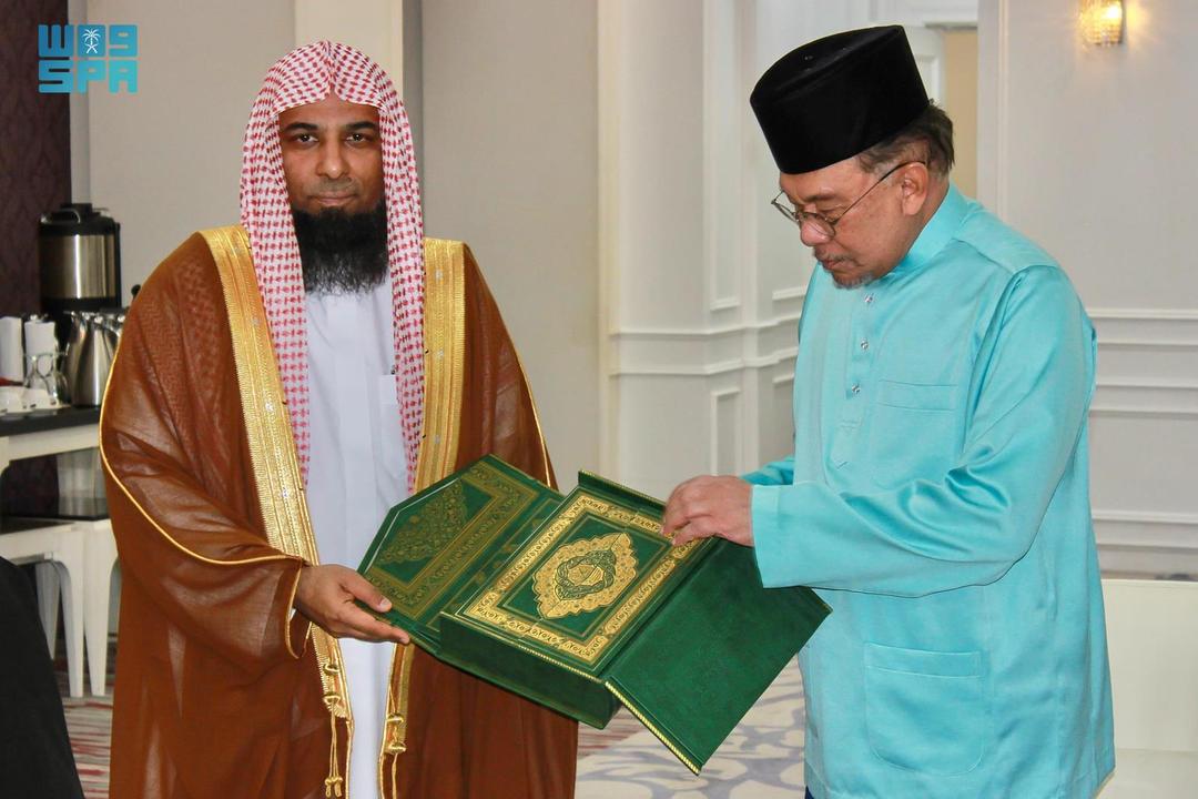 استقبل دولة رئيس وزراء ماليزيا السيد أنور إبراهيم، في مركز التجارة العالمي بالعاصمة كوالالمبور، أمس، فضيلة إمام وخطيب المسجد النبوي الشريف الشيخ الدكتور صلاح بن محمد البدير، بحضور سفير خادم الحرمين الشريفين لدى ماليزيا مساعد بن إبراهيم السليم، ورئيس البرلمان الماليزي الدكتور جوهاري بن عبده، ووزير الشؤون الدينية الماليزي الدكتور محمد نعيم مختار.