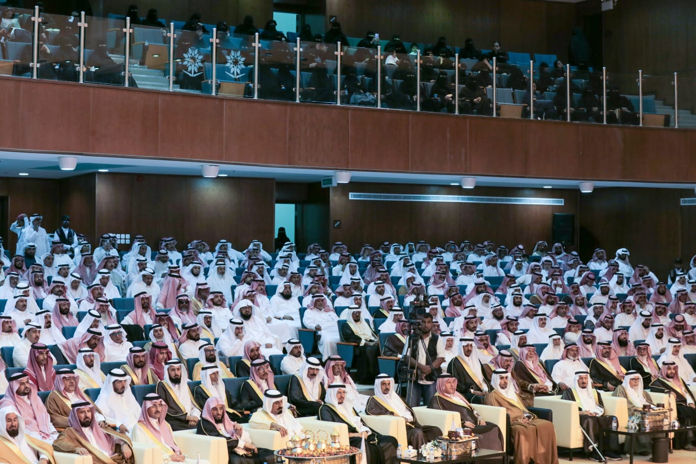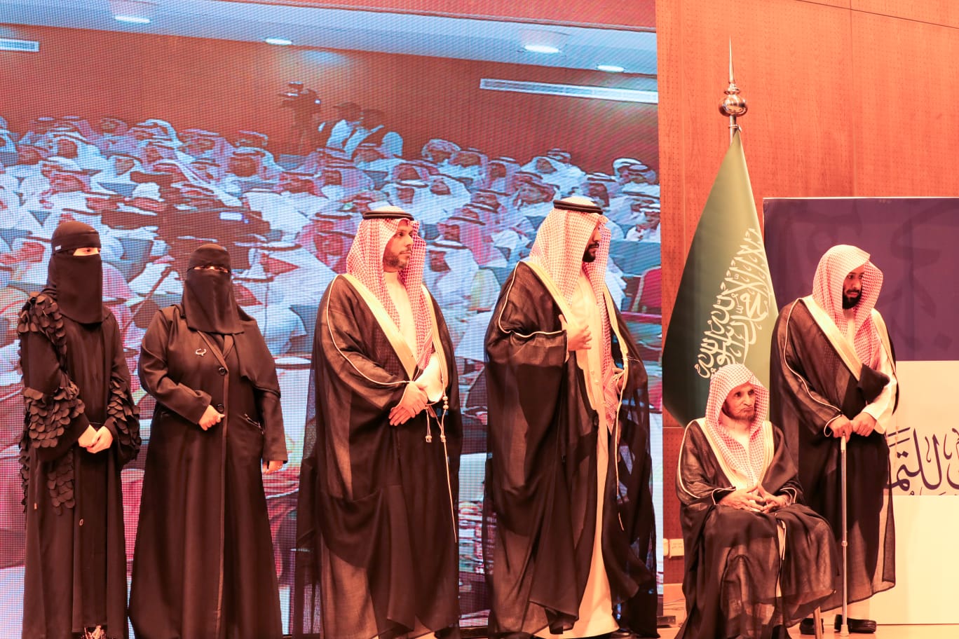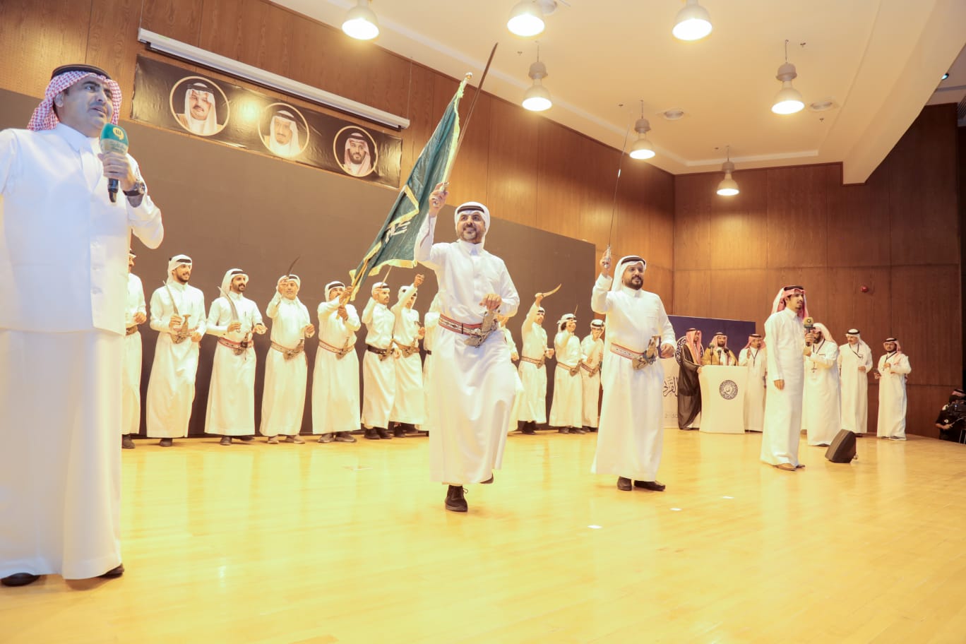 وانطلق الحفل بالنشيد الوطني بما فيه من الدلالة ومشاعر الفخر والاعتزاز ثم جاء دور المتحدثين والشعراء الذين قدموا الوطن ومكانته وقيادته ودورها في تنمية المكان وبناء الانسان قبل كل حديث.