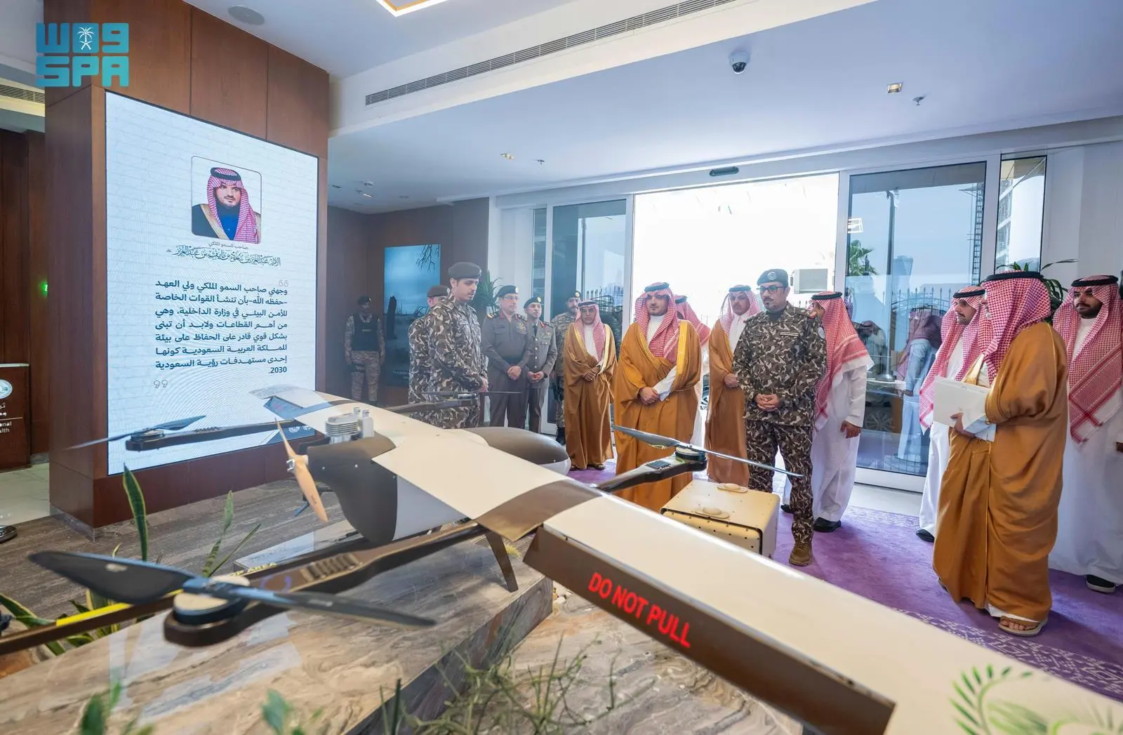 واستمع سموّه خلال الزيارة التفقدية إلى شرحٍ قدمه قائد القوات الخاصة للأمن البيئي اللواء الركن ساهر بن محمد الحربي، عن المنظومات التقنية التي تشمل طائرات الدرون والكاميرات الحرارية المستخدمة لمساندة مهام الدوريات الميدانية وآلية عملها.