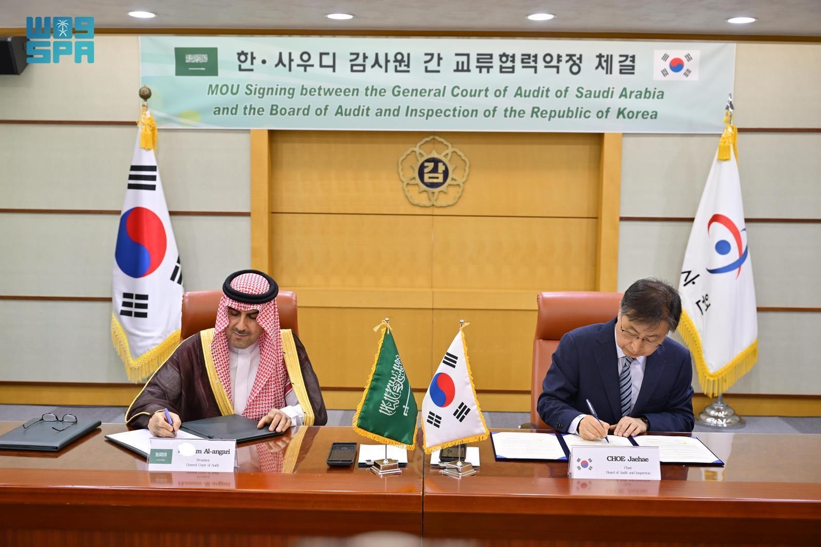وقَّعت المملكة العربية السعودية ممثلةً بالديوان العام للمحاسبة، وجمهورية كوريا ممثلةً بمجلس المراجعة والتفتيش اليوم، مذكرة تفاهم لتعزيز التعاون بين البلدين الصديقين في مجال العمل المحاسبي والرقابي والمهني، وذلك بمقر مجلس المراجعة في العاصمة الكورية سيئول.