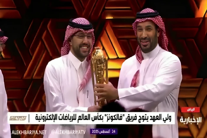 توج صاحب السمو الملكي الأمير محمد بن سلمان بن عبدالعزيز آل سعود، ولي العهد رئيس مجلس الوزراء، فريق فالكونز بلقب كأس العالم للرياضات الإلكترونية للمرة الثانية في تاريخه، وذلك خلال الحفل الختامي الذي أقيم مساء اليوم في العاصمة الرياض.