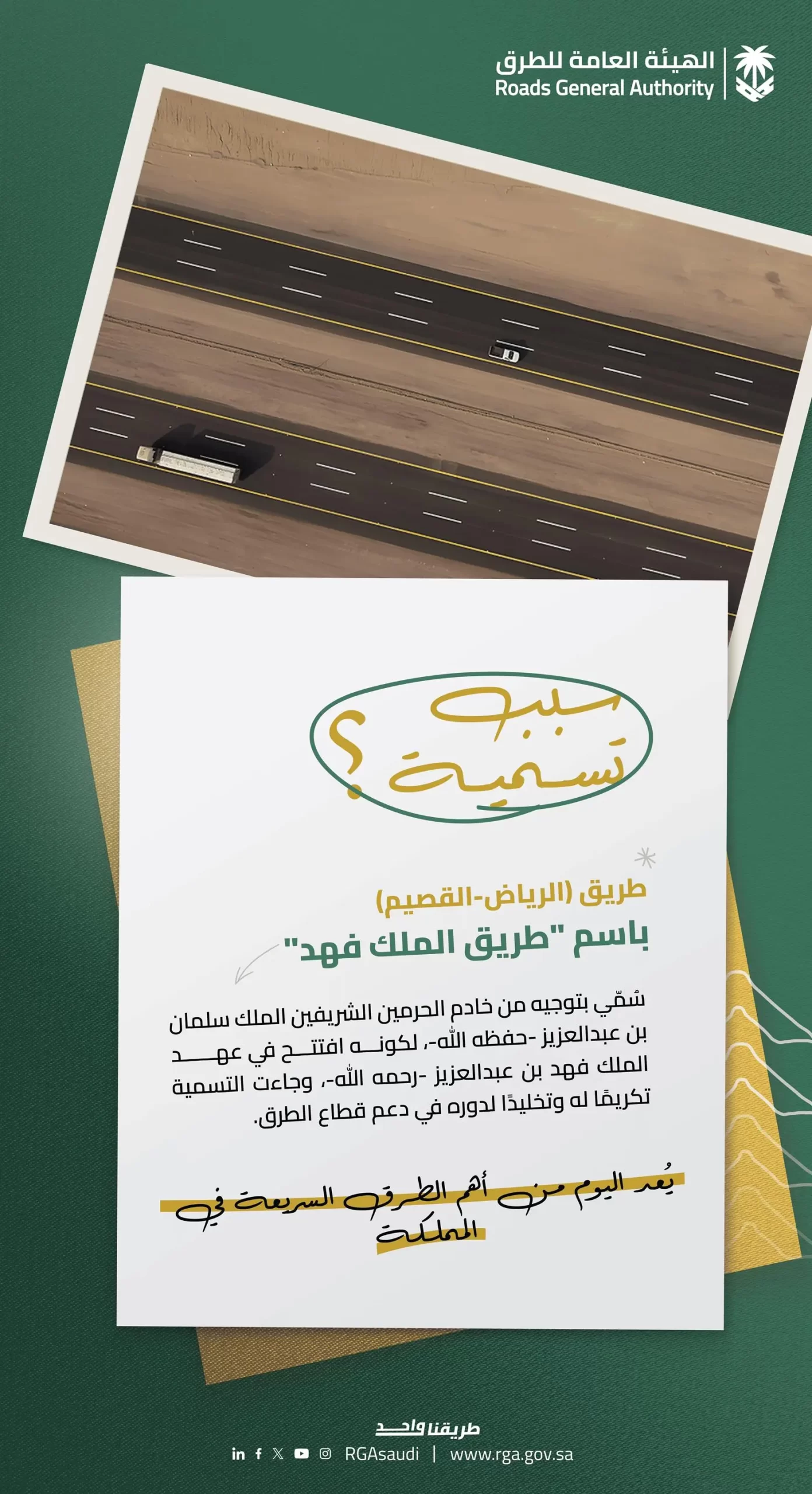 أكدت الهيئة العامة للطرق أن طريق الملك فهد يُعد أحد أبرز الطرق الحيوية في المملكة العربية السعودية، حيث يربط العاصمة الرياض بمنطقة القصيم بطول 337 كم، مرورًا بمحافظات تتميز بإمكانات زراعية حيوية تدعم التنمية الوطنية، ويسهم في تعزيز الحراك الاقتصادي عبر ربط المناطق الزراعية والصناعية، ويدعم النشاط الاجتماعي والسياحي؛ نظرًا لتحول الرياض إلى وجهة عالمية للسياحة ومقر لشركات عالمية بارزة.