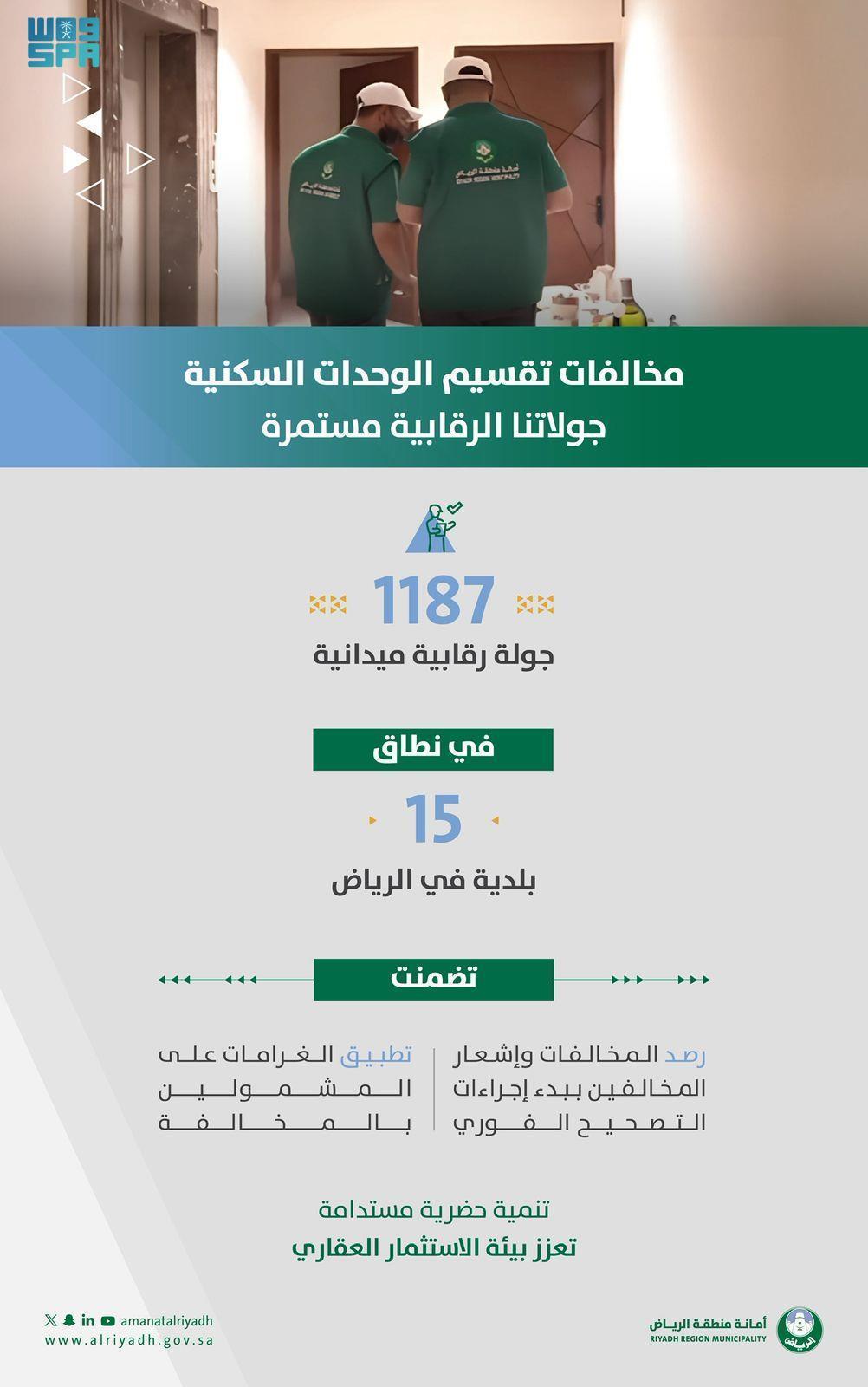 أمانة منطقة الرياض ترصد (12918) وحدة مخالفة لتقسيم الوحدات التأجيرية خلال (1187) جولة رقابية