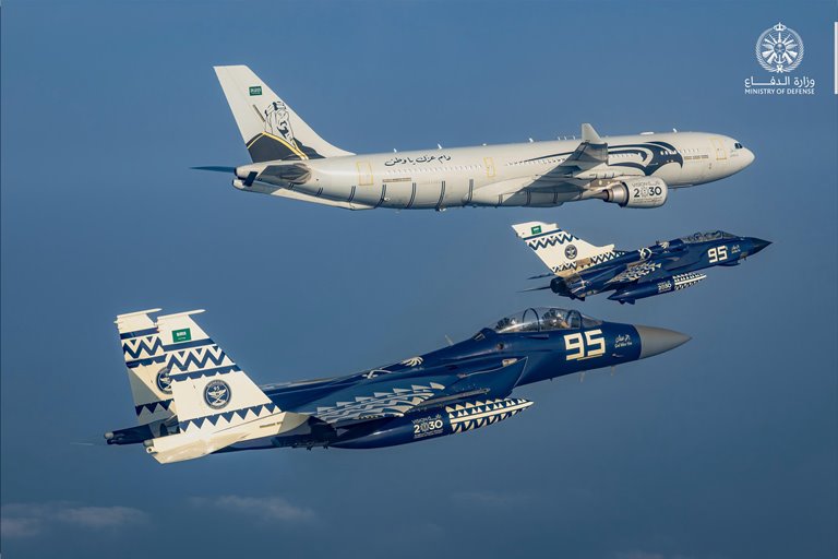 قدّمت القوات الجوية الملكية السعودية، اليوم، عروضًا جوية خلابة فوق واجهة روشن البحرية في محافظة جدة، احتفاءً باليوم الوطني السعودي الـ95.