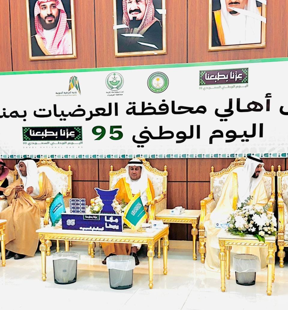 رعى سعادة محافظ العرضيات الأستاذ علي بن يوسف الشريف، احتفال أهالي محافظة العرضيات باليوم الوطني ٩٥ والذي ترافق معه وضع حجر الأساس لمشروع إنشاء المنطقة الصناعية بالعرضية الشمالية و تدشين معرض ملتقى الاستثمار بمحافظة العرضيات.