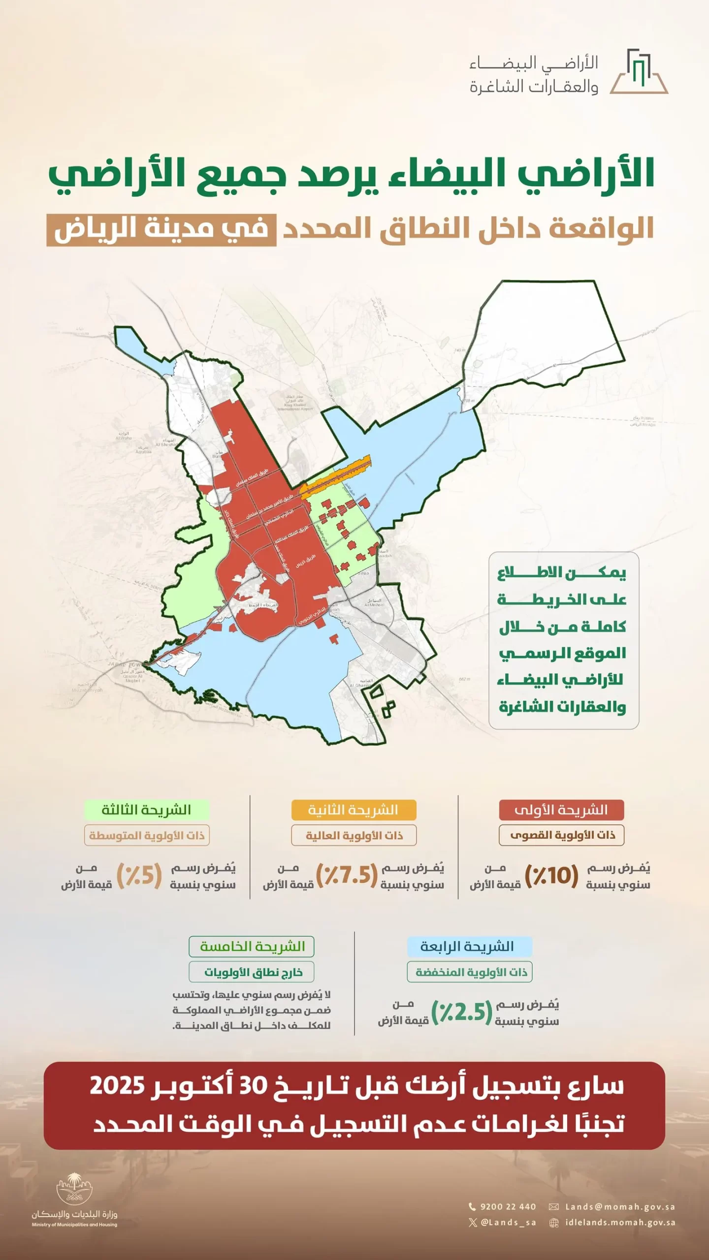 برنامج “الأراضي البيضاء والعقارات الشاغرة” يرصد جميع الأراضي ويدعو الملاك إلى المسارعة بالتسجيل قبل نهاية أكتوبر 2025
