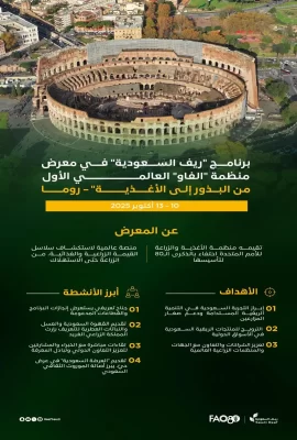 آخر الأخبار > المملكة تطرح نموذجها الريفي المستدام في معرض “فاو” العالمي “من البذور إلى الأغذية” بروما > fWVRILJqmi7zYm6ncPRTBJPbUWLuGxIz8ulu1xPS
