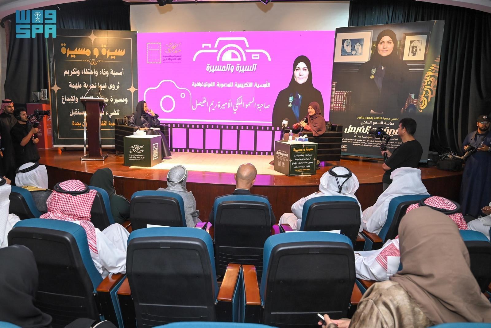 وأقيمت بهذه المناسبة أمسية بعنوان “السيرة والمسيرة” وذلك في مسرح الجمعية، بدأت بكلمة لمدير الجمعية محمد آل صبيح أكّد فيها اعتزاز الجمعية بتكريم المبدعين والمبدعات السعوديين، منوهًا بتجربة الأميرة ريم الفنية التي تمزج بين جماليات الأبيض والأسود، والرسائل الإنسانية التي تجسد القيم النبيلة في المجتمع.
