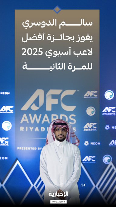 ويُعد هذا الفوز هو الثاني في مسيرة الدوسري بعد أن حصل على الجائزة ذاتها عام 2022، متفوقًا على منافسه القطري أكرم عفيف، ليواصل نجم الهلال كتابة التاريخ في الكرة الآسيوية.
