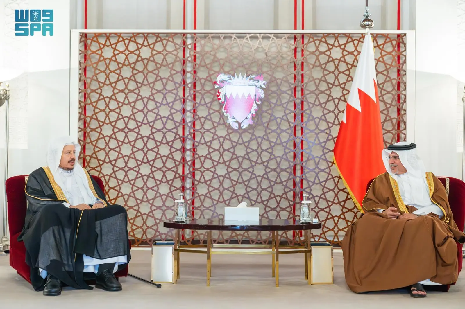 استقبل صاحب السمو الملكي الأمير سلمان بن حمد آل خليفة ولي العهد رئيس مجلس الوزراء بمملكة البحرين، اليوم في المنامة، معالي رئيس مجلس الشورى الشيخ الدكتور عبدالله بن محمد بن إبراهيم آل الشيخ وأصحاب المعالي ورؤساء المجالس التشريعية بدول مجلس التعاون لدول الخليج العربية, ومعالي رئيس البرلمان العربي، وذلك بمناسبة الاجتماع الدوري التاسع عشر لرؤساء مجالس الشورى والنواب والوطني والأمة لدول الخليج العربية الذي يعقد غدًا في المنامة.