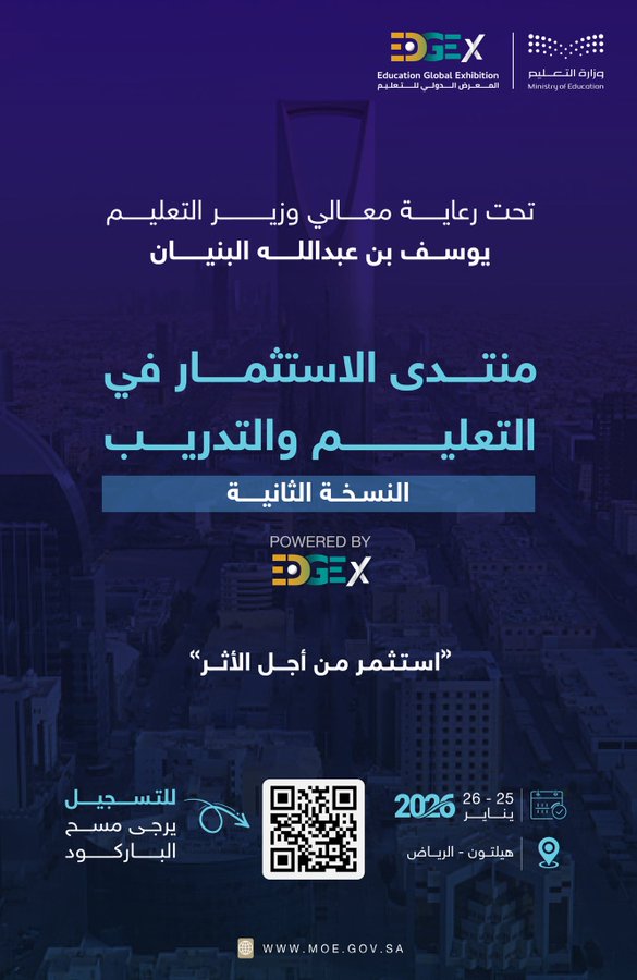 ويأتي المنتدى امتداداً لتحول قطاع التعليم والتدريب إلى أحد محركات النمو الاقتصادي وصناعة الفرص المستقبلية، عبر شراكات فاعلة بين القطاعين العام والخاص.