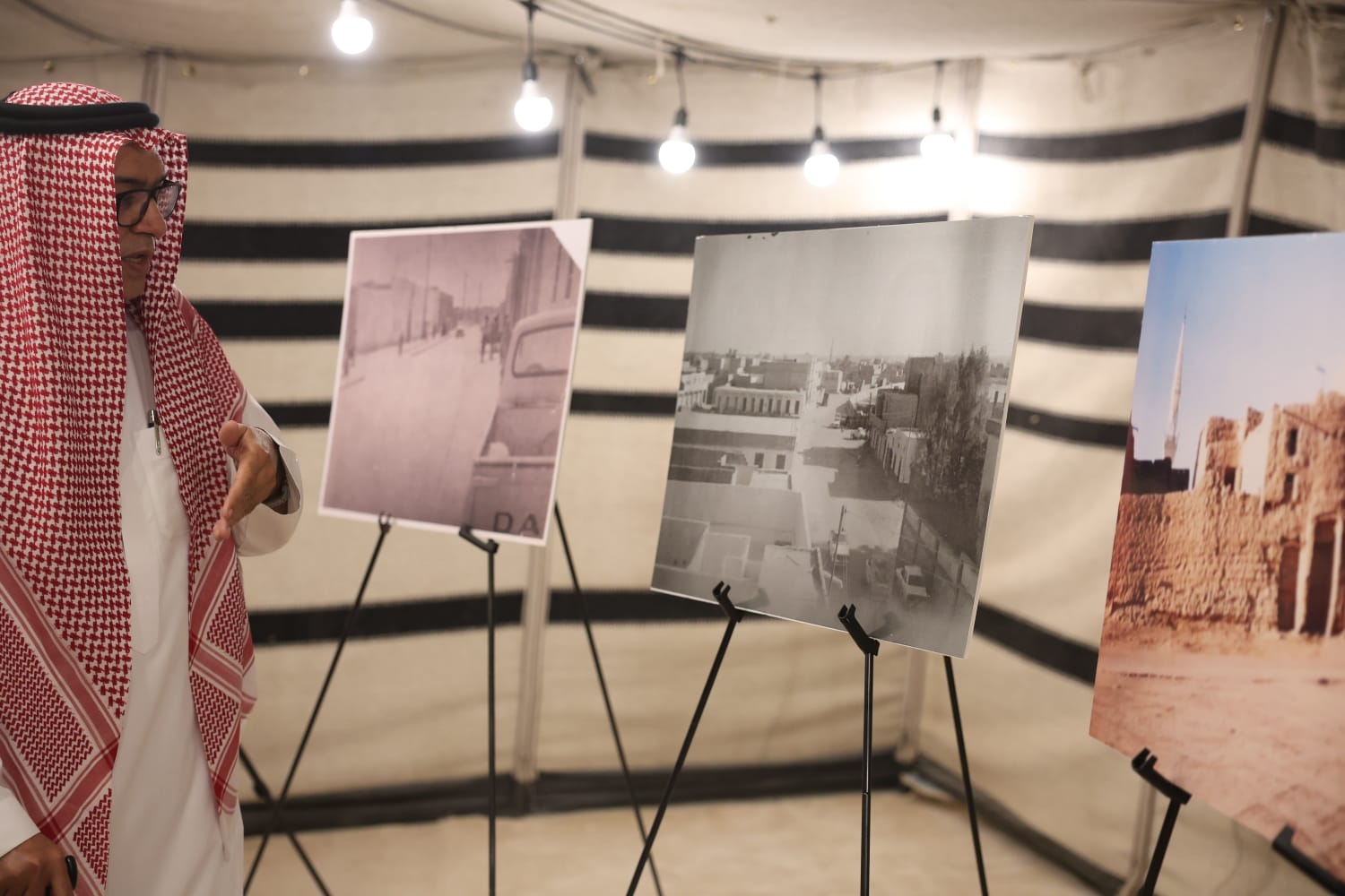 واطّلع المحافظ خلال جولته في المعرض على مجموعة من الصور النادرة التي وثّقت جانباً من مباني وشوارع وميادين محافظة وادي الدواسر في حقبة زمنية ماضية، تجاوزت أكثر من خمسين عاماً، حيث عكست تلك الصور ملامح الحياة آنذاك، وأساليب البناء، والفن المعماري السائد، والهوية العمرانية التي تميّزت بها المحافظة ومراكزها، ولا يزال الأهالي يفخرون بها ويتمسكون بقيمها حتى اليوم.