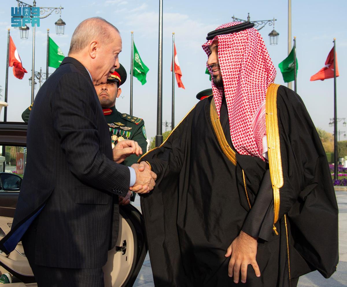 سمو ولي العهد يستقبل رئيس جمهورية تركيا ويعقدان جلسة مباحثات رسمية