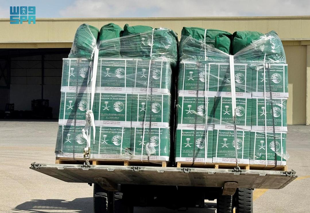 وتحمل الطائرة السعودية الـ(81) على متنها سلالًا غذائية وحقائب إيوائية، تمهيدًا لنقلها إلى المتضررين من الشعب الفلسطيني الشقيق داخل قطاع غزة.