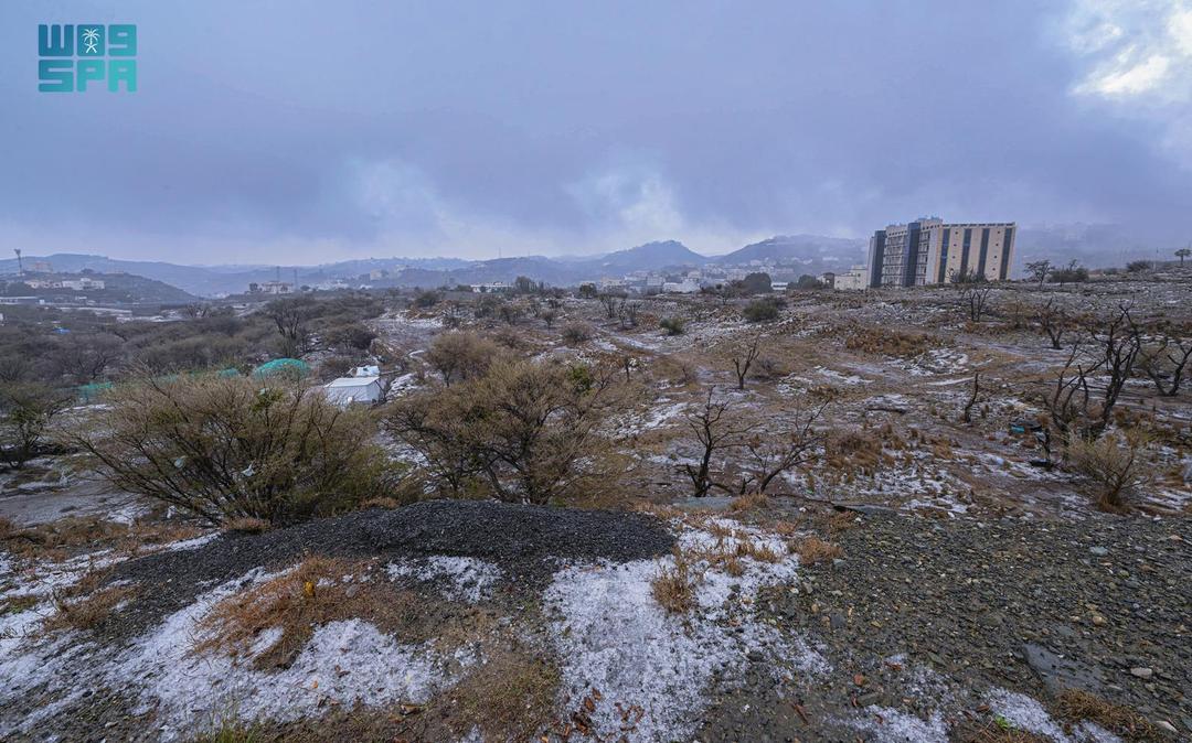 الباحة تشهد حالة مطرية غزيرة يكسو خلالها البَرَد شوارعها ومرتفعاتها