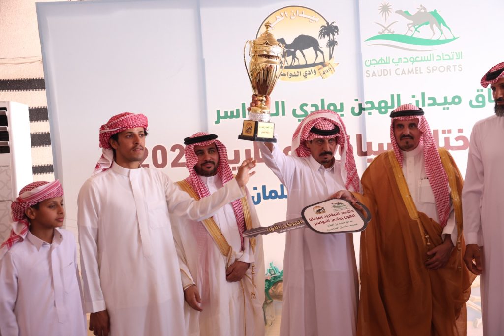 وفي ختام الحفل، كرّم محافظ وادي الدواسر الفائزين في الأشواط، والجهات الحكومية والأمنية المشاركة، والداعمين لبرامج الميدان، كما تسلّم هدية تذكارية بهذه المناسبة، فيما تسلّم المدير التنفيذي للاتحاد السعودي للهجن درعًا تذكارياً مماثلاً.