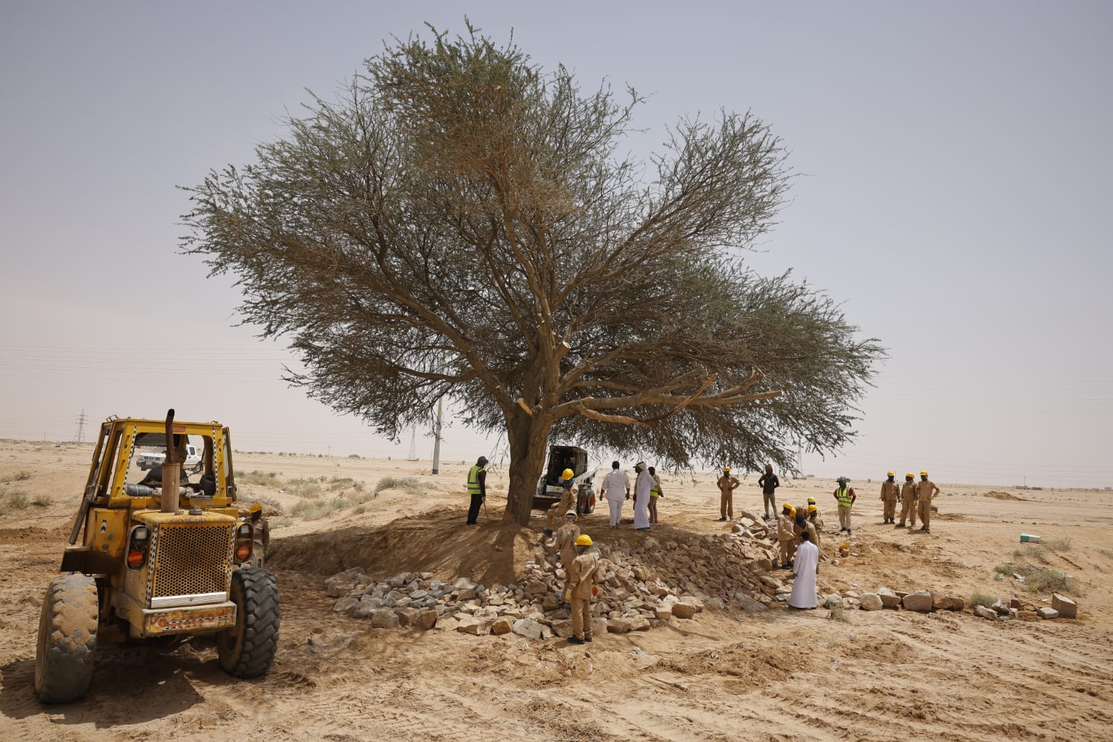 وجاءت هذه الجهود استجابةً لبلاغ ورد بشأن الحالة، حيث تم تشكيل فريق عمل مشترك ضم عددًا من الجهات ذات العلاقة، إلى جانب فريق فني من المركز، للعمل على إعادة الشجرة إلى وضعها الطبيعي.