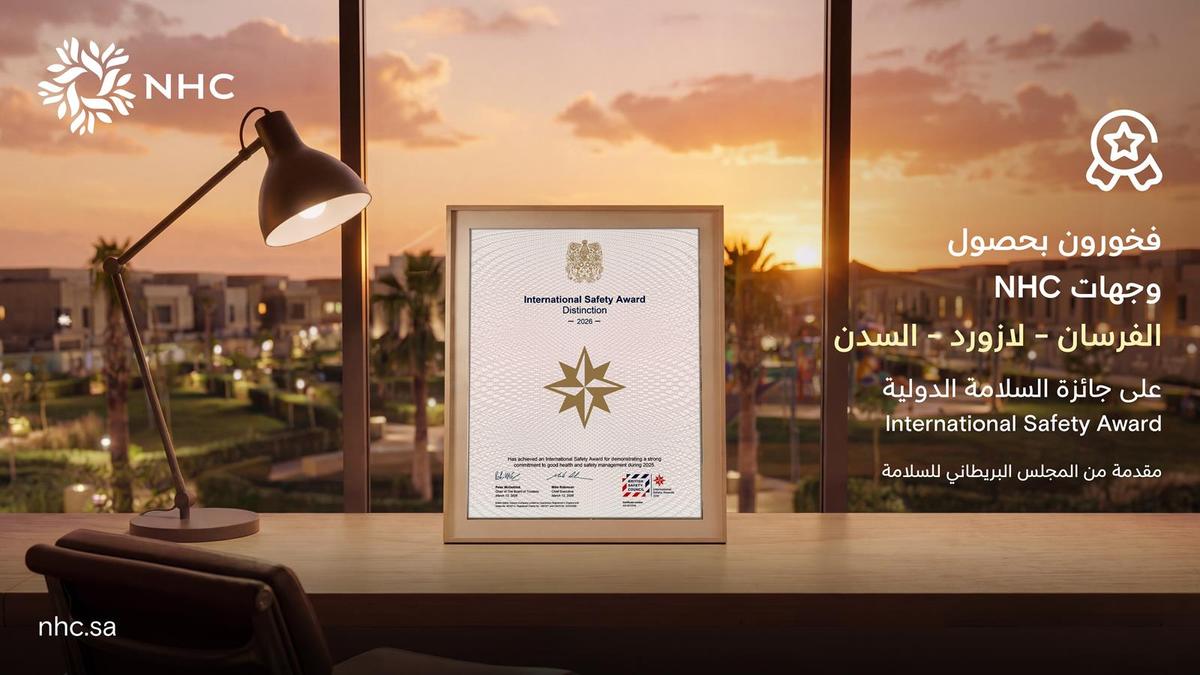 حققت NHC إنجازًا جديدًا بحصولها على ثلاث جوائز ضمن مستوى التميّز في جائزة السلامة الدولية 2026، المقدّمة من المجلس البريطاني للسلامة، وذلك عن مشاريعها في وجهة الفرسان بمدينة الرياض، ووجهة السدن بمحافظة جدة، ووجهة لازورد بمحافظة الخبر، في تأكيد على التزامها بتطبيق أعلى معايير السلامة والصحة المهنية في مشاريعها العمرانية.