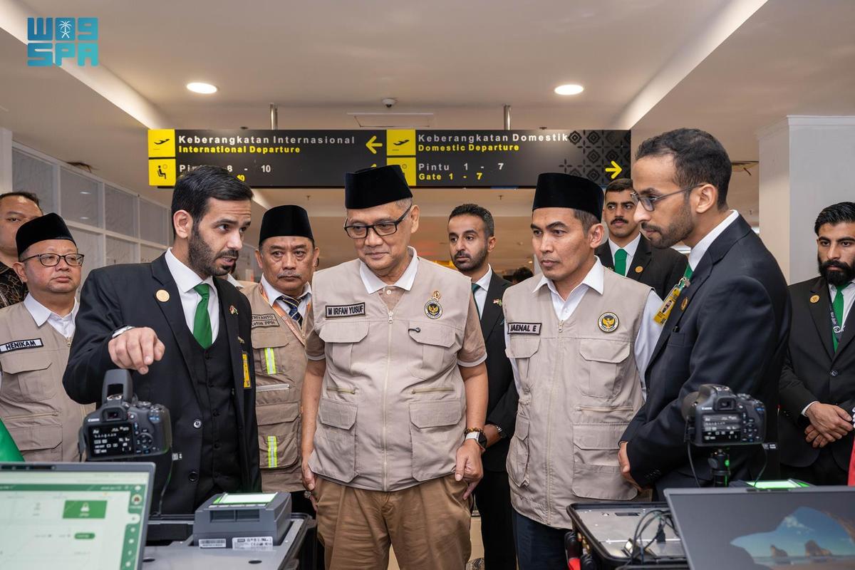 وزير الحج والعمرة بجمهورية إندونيسيا يزور صالة “مبادرة طريق مكة” في مطار أديسومارمو الدولي