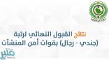 إعلان نتائج المرشحين للقبول النهائي لقوات أمن المنشآت على رتبة (جندي)