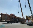 بالصور.. سقوط مظلة كبيرة على شاحنة محملة بالسيارات في نقطة تفتيش بمكة