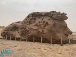 منبر - واس : أعادت الهيئة العامة للسياحة والتراث الوطني صخرة عنترة في مركز غاف الجواء بمنطقة القصيم إلى صفائها وشكلها الطبيعي بإزالة التشوه البصري، وتنظيف الصخرة من قبل فريق متخصص بقطاع الآثار والمتاحف .. التفاصيل