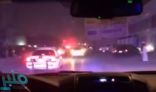 وبدت في الفيديو دوريات الأمنية تطارد سيارتين يستقلهما ..